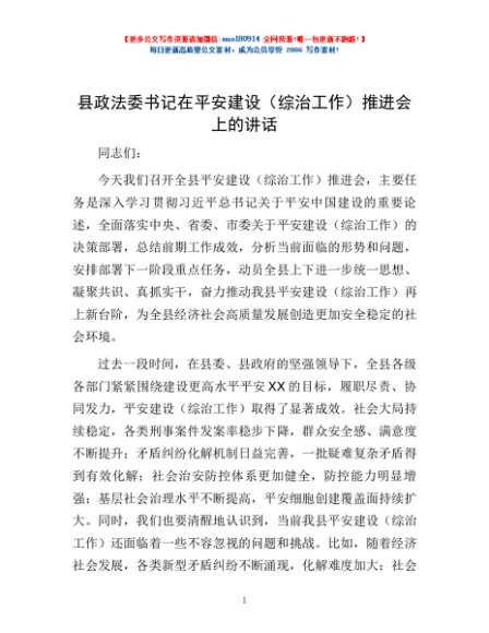 / 县政法委书记在平安建设(综治工作)推进会上的讲话