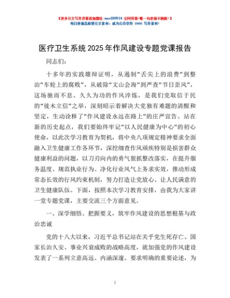 / 医疗卫生系统2025年作风建设专题党课报告