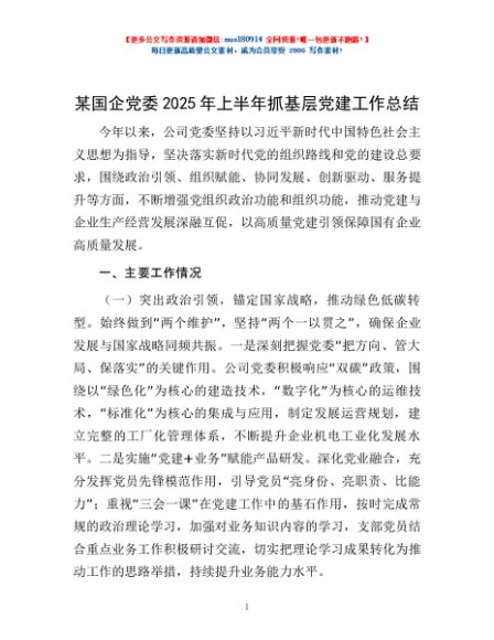 / 某国企党委2025年上半年抓基层党建工作总结