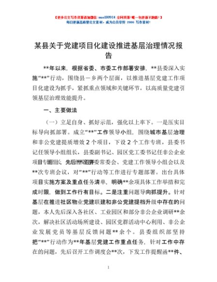 / 某县关于党建项目化建设推进基层治理情况报告