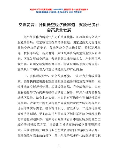 交流发言:抢抓低空经济新赛道,赋能经济社会高质量发展