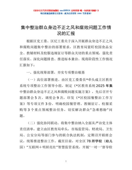 / 集中整治群众身边不正之风和腐败问题工作情况的汇报