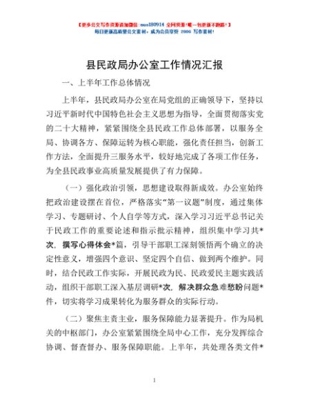 / 县民政局办公室工作情况汇报