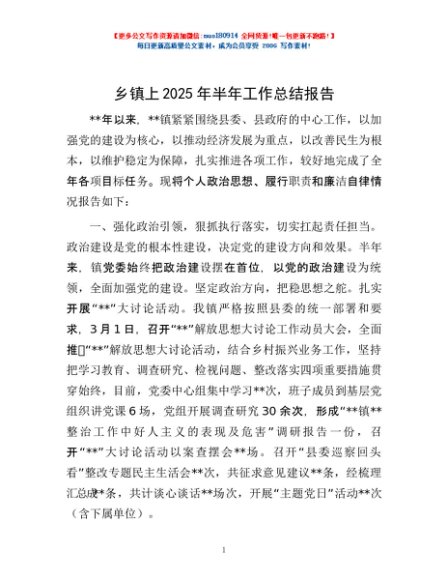/ 乡镇上2025年半年工作总结报告