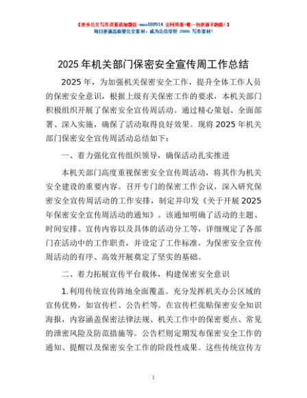 / 2025年机关部门保密安全宣传周工作总结