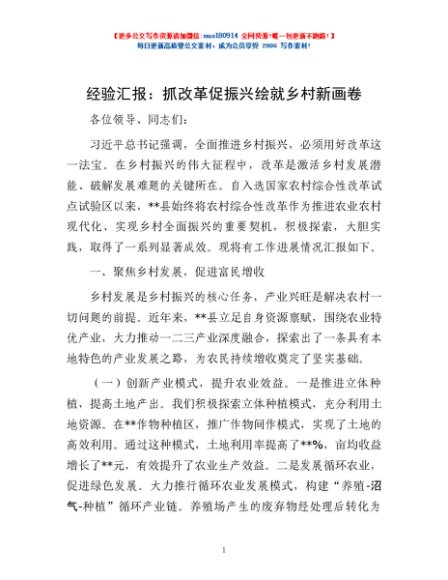 经验汇报:抓改革促振兴 绘就乡村新画卷