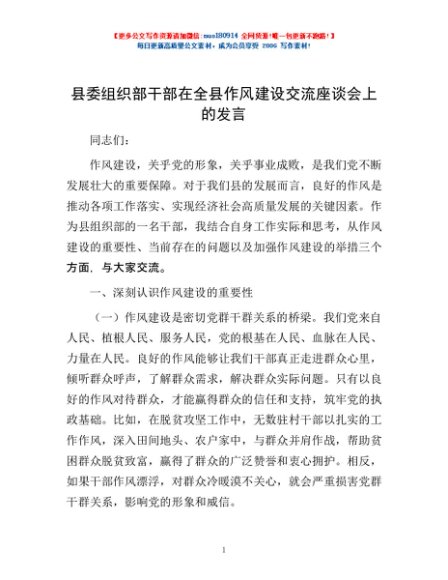 / 县委组织部干部在全县作风建设交流座谈会上的发言