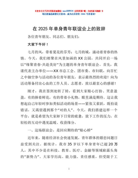 / 在2025年单身青年联谊会上的致辞