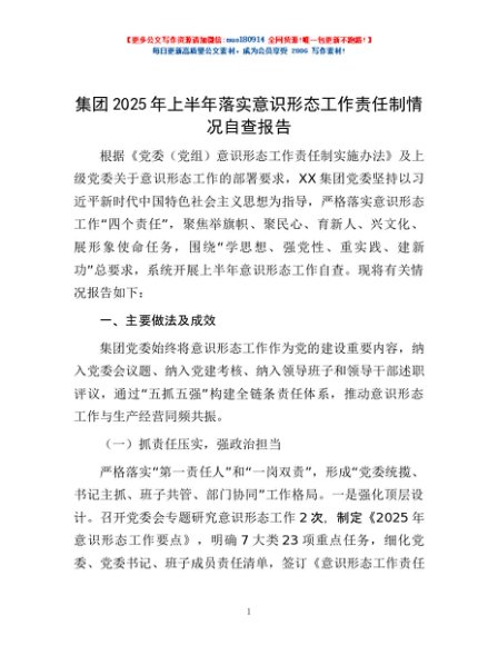 / 集团2025年上半年落实意识形态工作责任制情况自查报告