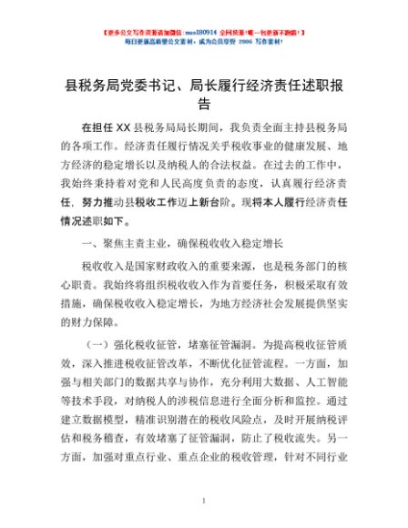 / 县税务局党委书记、局长履行经济责任述职报告