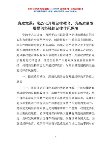 / 廉政党课:常态化开展纪律教育,为高质量发展提供坚强的纪律作风保障