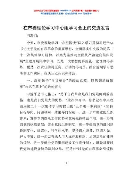 / 在市委理论学习中心组学习会上的交流发言