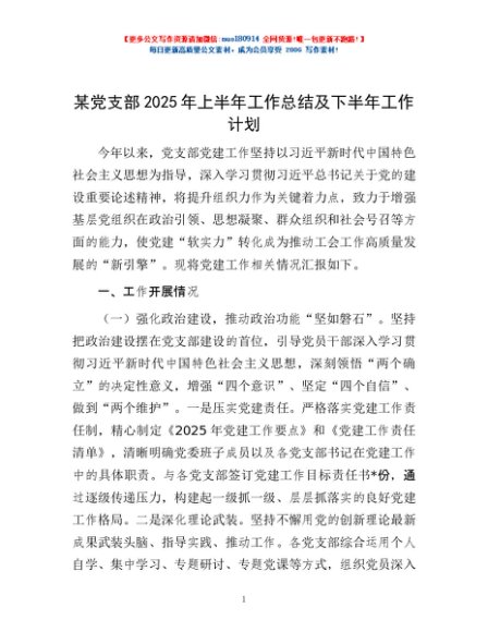 / 某党支部2025年上半年工作总结及下半年工作计划