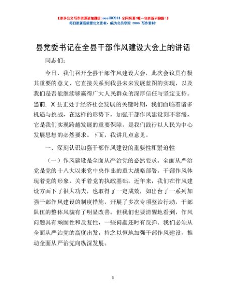 / 县党委书记在全县干部作风建设大会上的讲话