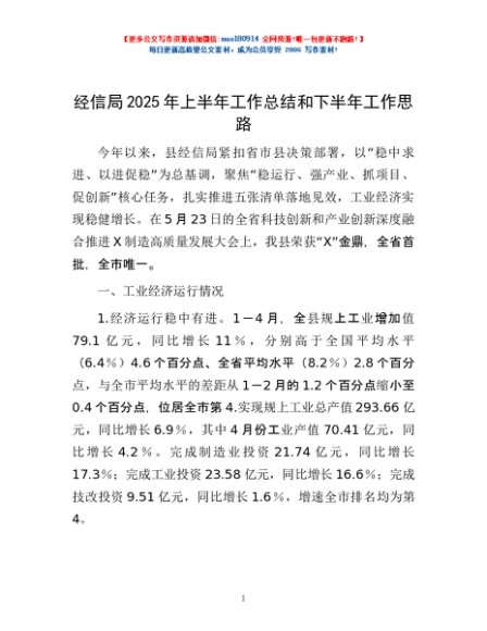 / 经信局2025年上半年工作总结和下半年工作思路