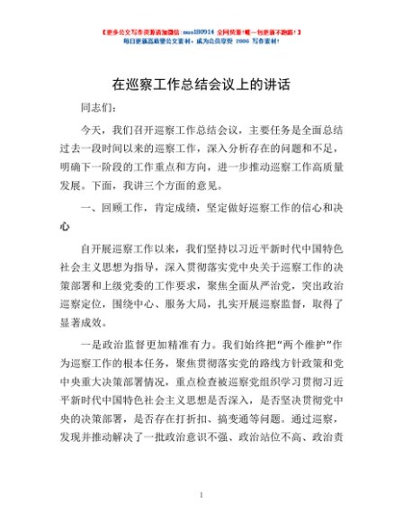 / 在巡察工作总结会议上的讲话