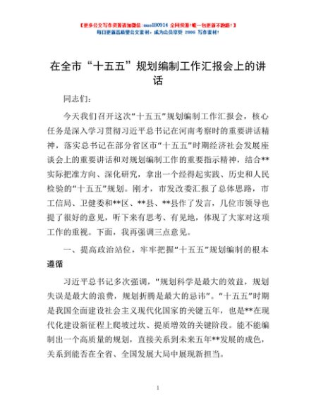 / 在全市“十五五”规划编制工作汇报会上的讲话