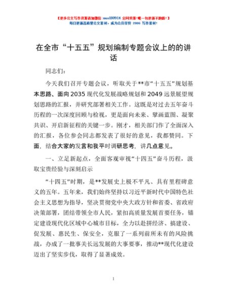 / 在全市“十五五”规划编制专题会议上的的讲话