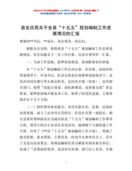 / 县发改局关于全县“十五五”规划编制工作进展情况的汇报