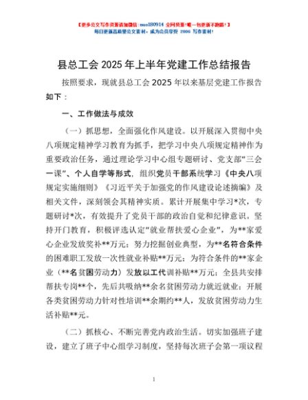 / 县总工会2025年上半年党建工作总结报告