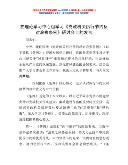 / 在理论学习中心组学习《党政机关厉行节约反对浪费条例》研讨会上的发言