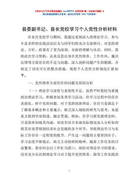 / 县委副书记、县长党校学习个人党性分析材料