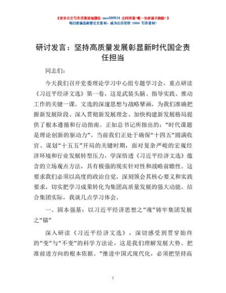 / 研讨发言:坚持高质量发展 彰显新时代国企责任担当