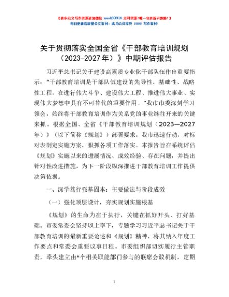 / 关于贯彻落实全国全省《干部教育培训规划(2023-2027年)》中期评估报告