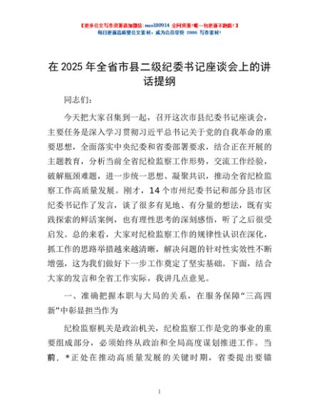 / 在2025年全省市县二级纪委书记座谈会上的讲话提纲