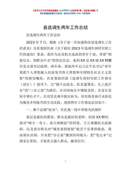 / 县选调生两年工作总结