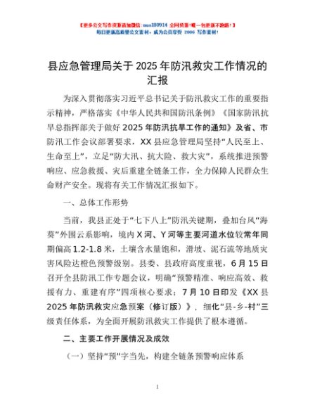 / 县应急管理局关于2025年防汛救灾工作情况的汇报