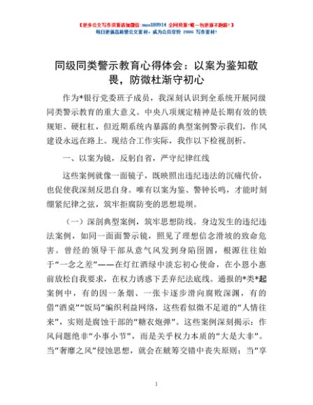 / 同级同类警示教育心得体会:以案为鉴知敬畏,防微杜渐守初心