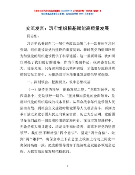 交流发言:筑牢组织根基 赋能高质量发展