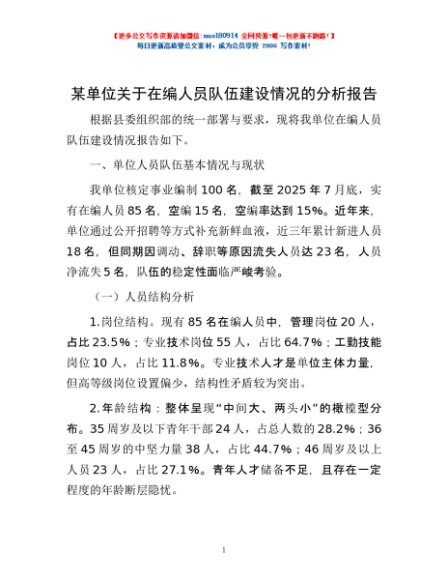 / 某单位关于在编人员队伍建设情况的分析报告