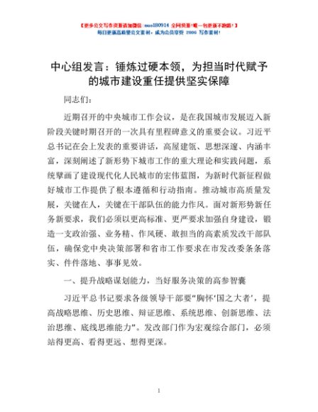 / 中心组发言:锤炼过硬本领,为担当时代赋予的城市建设重任提供坚实保障