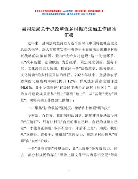 / 县司法局关于抓改革促乡村振兴法治工作经验汇报