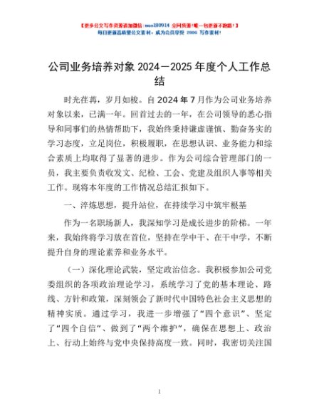 / 公司业务培养对象2024-2025年度个人工作总结