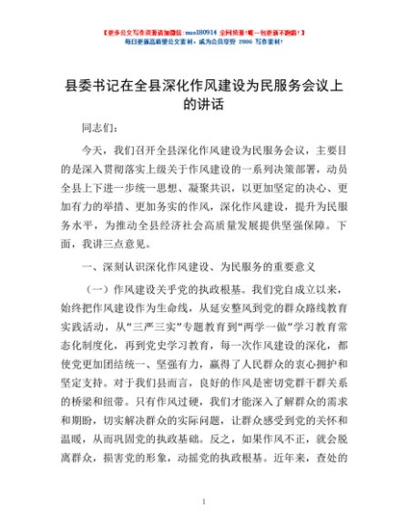 / 县委书记在全县深化作风建设为民服务会议上的讲话