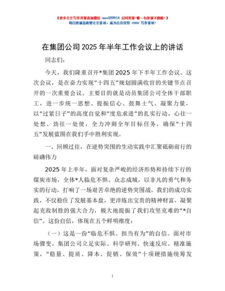 / 在集团公司2025年半年工作会议上的讲话