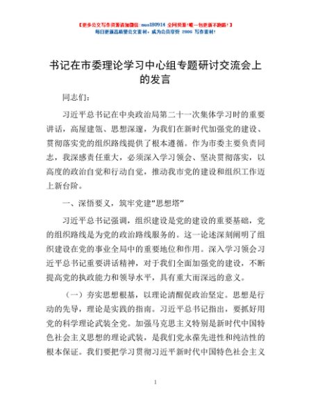 / 书记在市委理论学习中心组专题研讨交流会上的发言