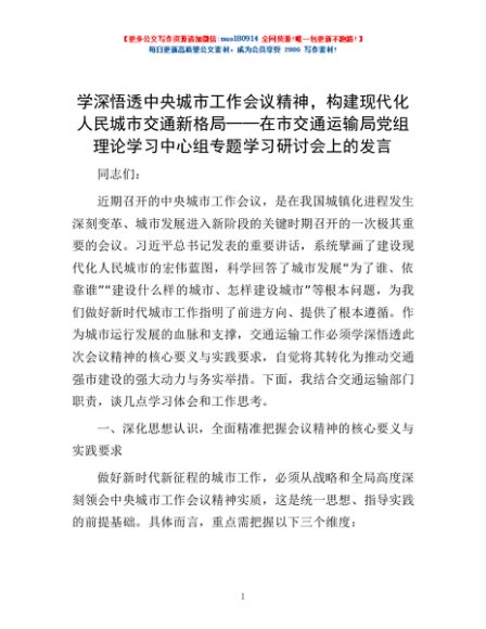 / 学深悟透中央城市工作会议精神,构建现代化人民城市交通新格局——在市交通运输局党组理论学习中心组专题学习研讨会上的发言