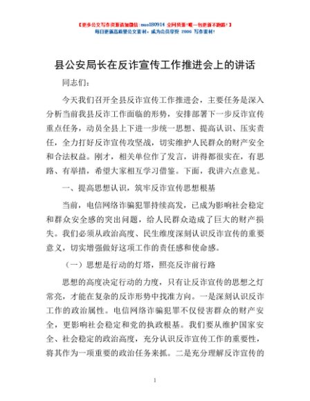 / 县公安局长在反诈宣传工作推进会上的讲话