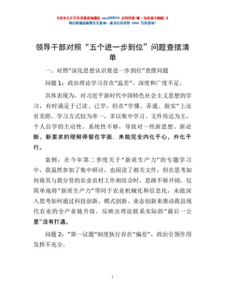 / 领导干部对照“五个进一步到位”问题查摆清单