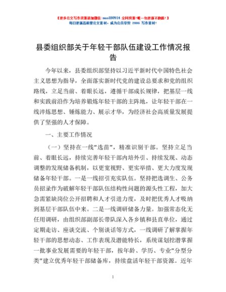 / 县委组织部关于年轻干部队伍建设工作情况报告