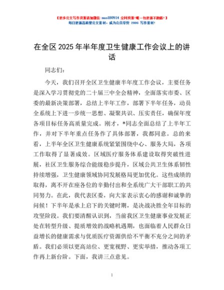 / 在全区2025年半年度卫生健康工作会议上的讲话