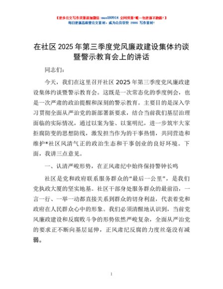 / 在社区2025年第三季度党风廉政建设集体约谈暨警示教育会上的讲话