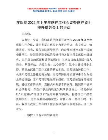 / 在医院2025年上半年感控工作会议暨感控能力提升培训会上的讲话