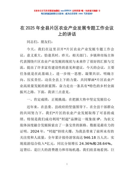 / 在2025年全县片区农业产业发展专题工作会议上的讲话