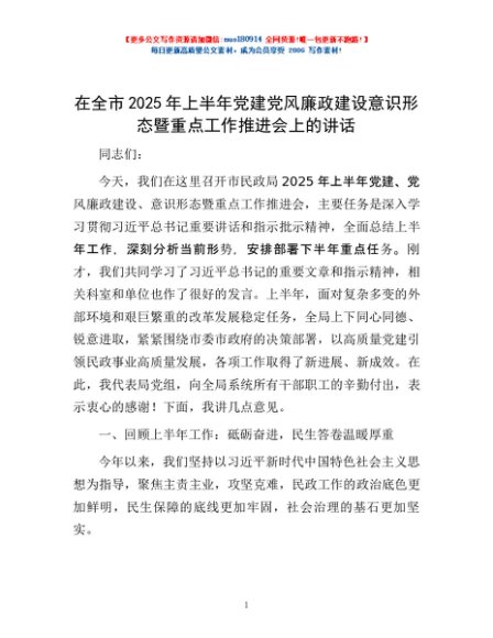 / 在全市2025年上半年党建党风廉政建设意识形态暨重点工作推进会上的讲话