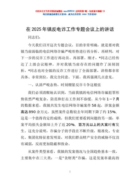 / 在2025年镇反电诈工作专题会议上的讲话
